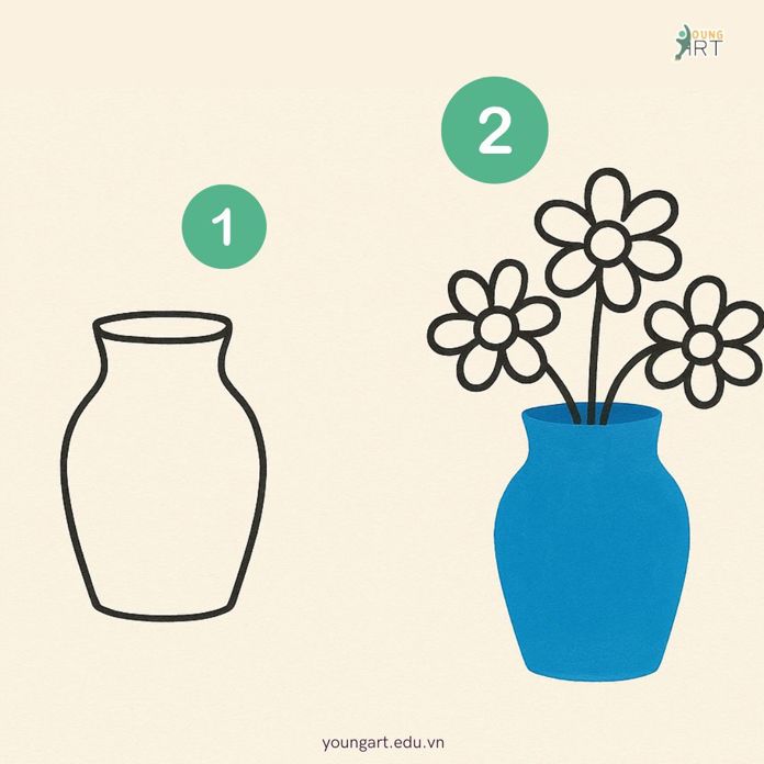 Cho bé vẽ hình tròn, hình oval hoặc hình chữ nhật để làm lọ hoa.