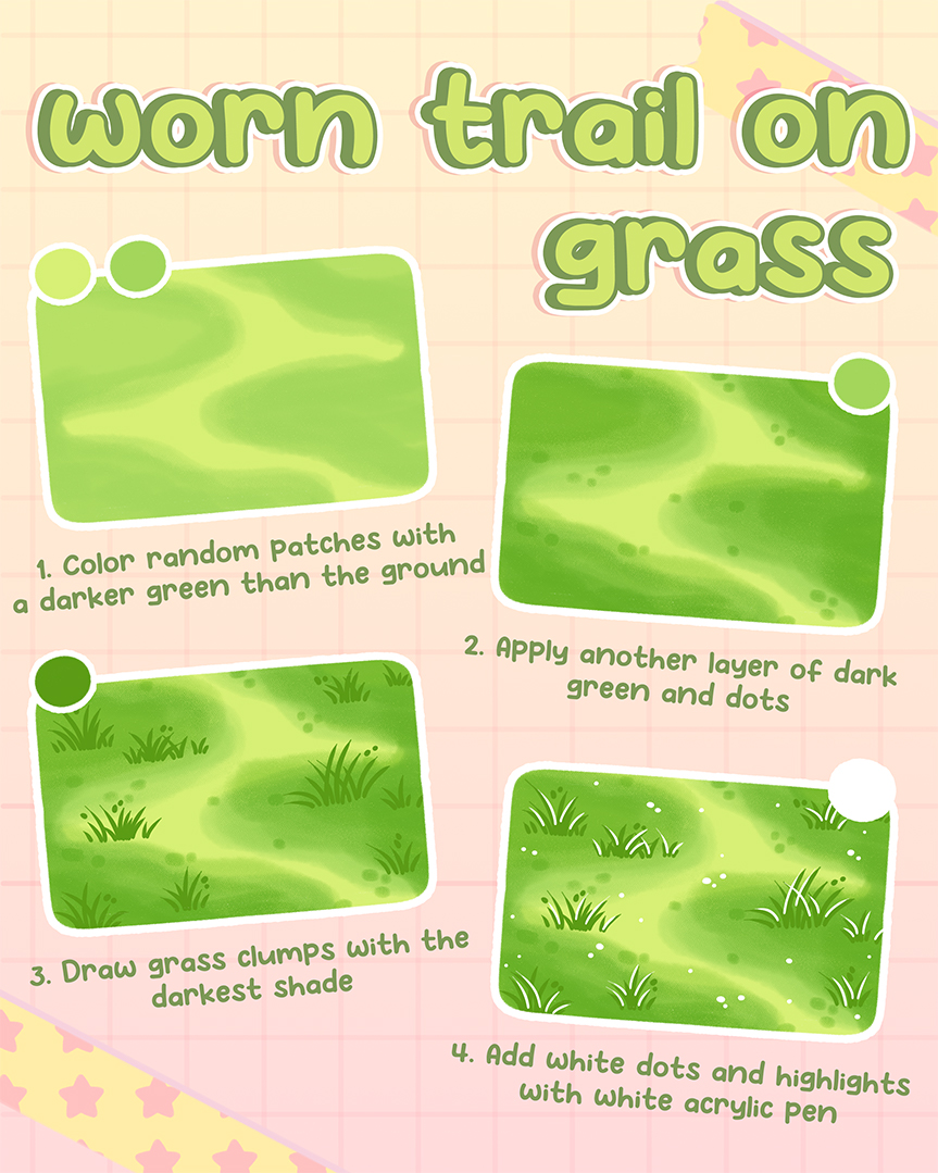 Chồng thêm một lớp xanh đậm khác lên vùng bóng, đồng thời chấm các điểm nhỏ để mô phỏng kết cấu cỏ và đất.