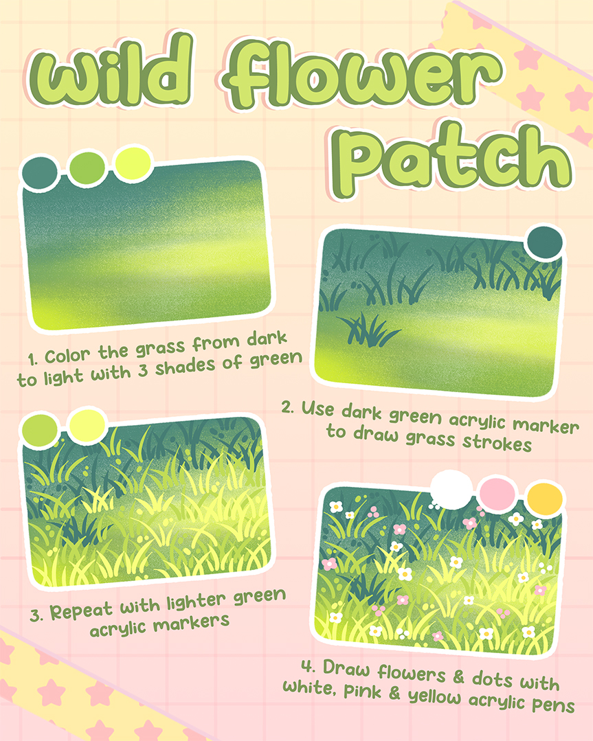 Dùng bút trắng để chấm những bông hoa nhỏ như hoa cúc hoặc dấu sao 5 cánh.